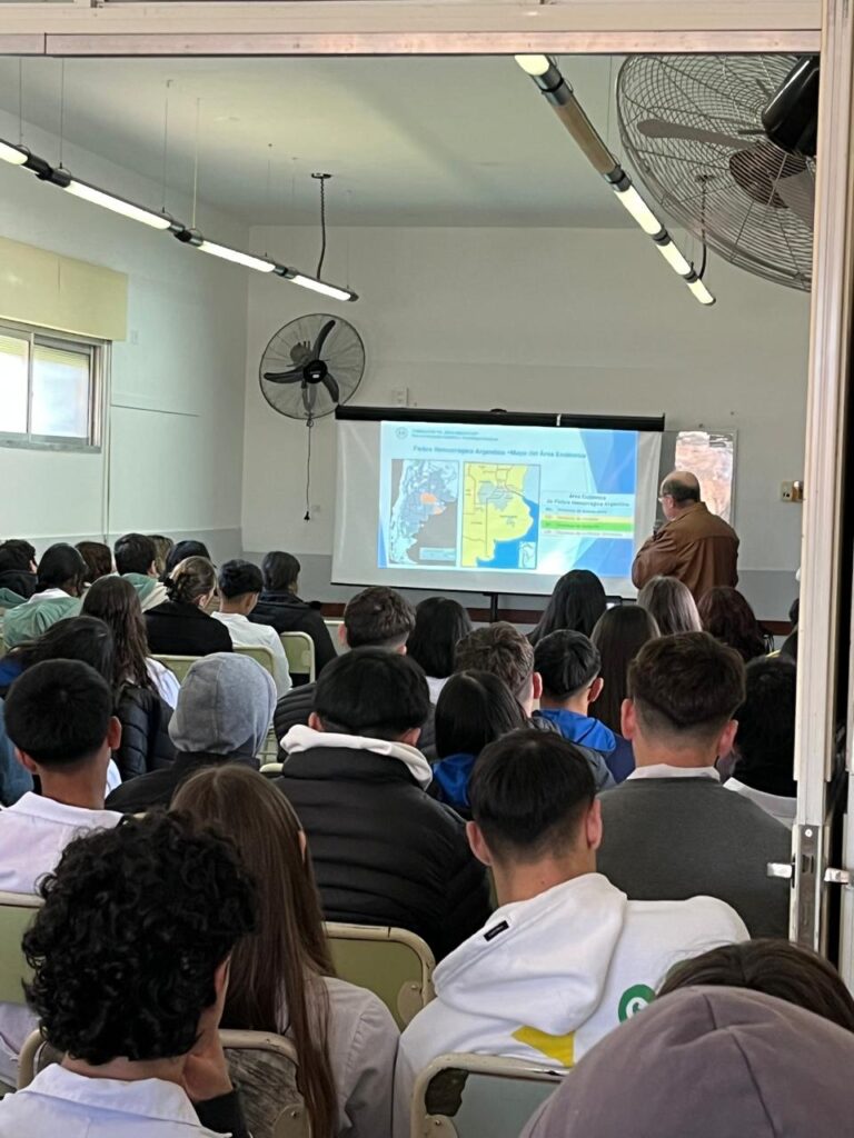 Continuando con la tarea de Difusión y Concientización, el día 14 de Agosto por la tarde, estuvimos en la localidad de MARIA SUSANA, con una charla sobre “La Fundación Maiztegui y la Fiebre Hemorrágica Argentina”, que se realizó en el salón de la Escuela EESO N° 236.