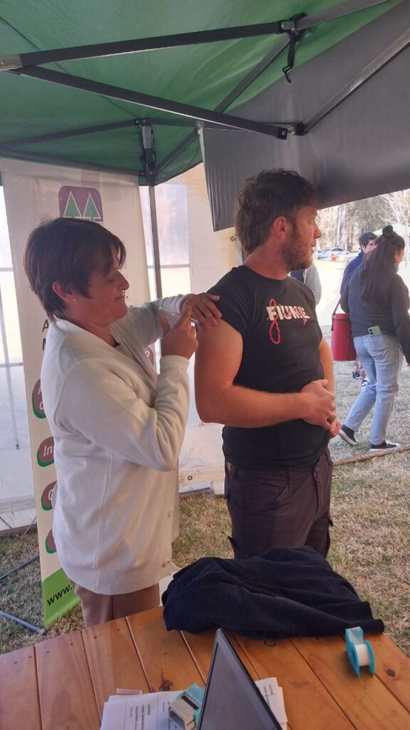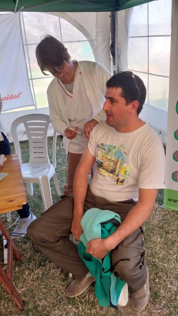 La vacunación para F.H.A. estuvo a cargo del SAMCO local, realizada por los profesionales de enfermería Lorena Bacaloni, Gabriela Biolatto, y Guido Fermani. Nuestro agradecimiento por la invitación y la calidez con la que fuimos recibidos y atendidos en los cuatro días que estuvimos allí, al grupo de Mujeres Cooperativistas, a la Cooperativa Federal Agrícola Ganadera de María Susana Ltda., a la Comuna de María Susana, al SAMCO y todos los que de una u otra forma han hecho posible nuestra participación en estos importantes eventos en esa zona.