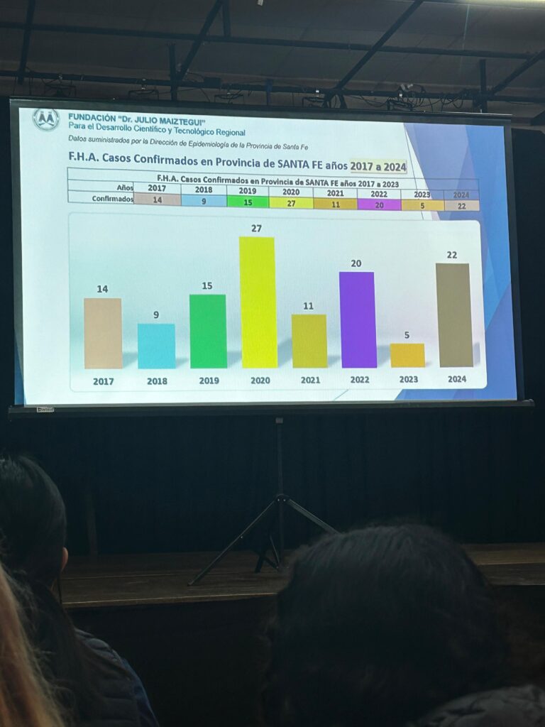Las Dras. Murano y Fernández tuvieron activa participación en la charla, brindado información y comentando sobre trabajo que vienen realizando durante todo el año sobre la Fiebre Hemorrágica Argentina, y la vacunación tanto en las escuelas, como en la comunidad y los eventuales trabajadores transitorios que llegan a la localidad.